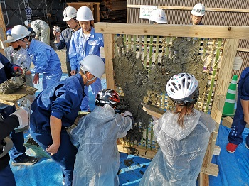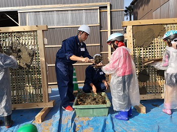 子どもたちの学習のお手伝いをしただけではなく、高校生も工事現場の様子や建物の見学、職人さん(左官)の技のすごさを体験することができました。またこのような機会があれば是非参加したいと思っています。