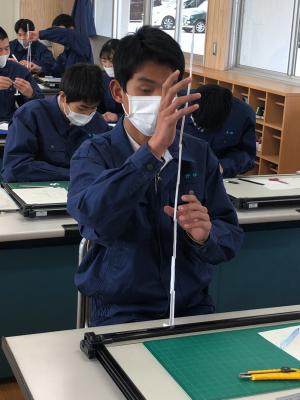 12月になって寒くなってきましたが、2年次生の実習内容(工業系列建築)も本格的になってきました。建築技術の向上を目指して頑張っています。