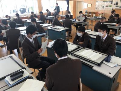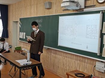3月17日、2年次で建築設計製図αを履修している生徒が自分で設計した住宅の発表会を行いました。