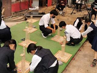 9月21日(土)に崇城大学主催「第9回つまようじタワー耐震コンテスト高校生大会」が行われ、本校の2年次生の製作したタワーが3位に入賞しました。また、出場した他の4台のタワーも本校の過去の成績を上回るものでした。
