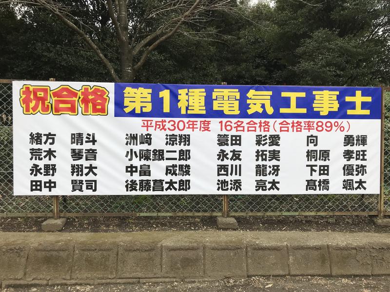 第1種電気工事士16名合格(合格率89%)