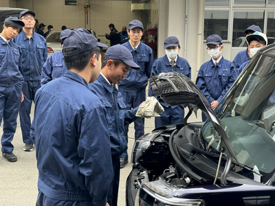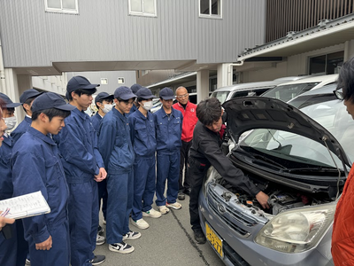 11月30日(木)5,6限の実習で工業系列(機械)の2年生が自動車整備工業協同組合青年部の皆様から自動車整備の仕事について授業をしていただきました。講師の中には本校のOBの方もおられ、温かい激励をいただきました。授業をとおして自動車についての理解を深めることができました。生徒にとって貴重な経験となったようです。この度はありがとうございました。