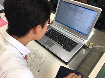 そして3年次になると専門的な図面やパソコンで作図を行うCADの課題を行います。