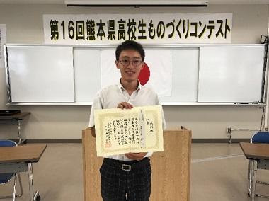6月16日(日)、玉名工業高校で開催された「第16回熊本県高校生ものづくりコンテスト(電子回路組立部門)」に工業系列電気電子3年の永野君が出場し、銅賞を受賞しました!!