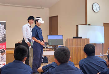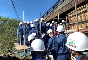 10月31日(水)工業系列建築の生徒は、熊本県建設業協会阿蘇支部の皆さんの協力をいただき就職ガイダンスおよび現場見学会に参加しました。午前は熊本地震で被災した車帰橋の災害復旧現場の見学、VRを用いた現場体験、午後は、建設業の魅力についての話をうかがいました。