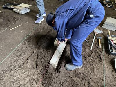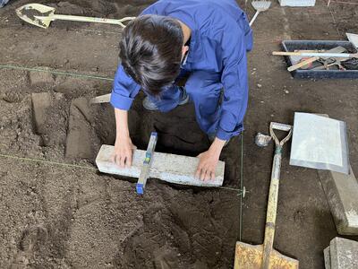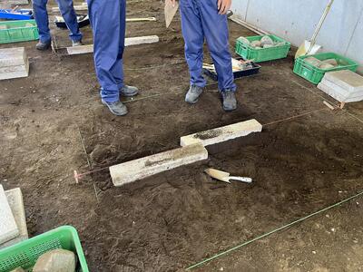 2年生の3級技能士合格に向けて、竹垣の次、縁石にチャレンジしました!