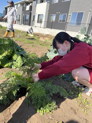 1年次生の選択科目「農業と環境」では冬野菜がどんどん大きくなり収穫を迎えています。
