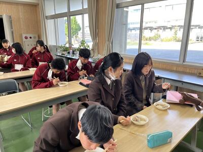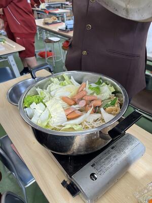 12月16日(金)1年次の総合選択「農業と環境」では栽培したハクサイやダイコンを使って