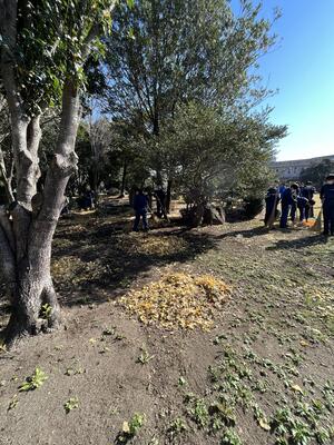 12月21日、今日は3年次の実習で校内の落ち葉掃きをしました!