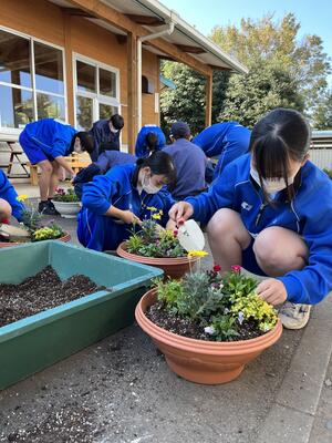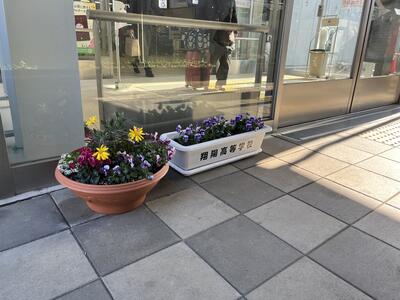 1月10日(火)空港にプランター装飾へ行って来ました。今年も準備のために、3年次のガーデニングの授業でパンジーとガーデンシクラメンをプランターに定植し、寄せ植えも作りました。熊本空港へ行かれた際は是非ご覧ください。沢山の方に見て頂けると嬉しいです♪♪