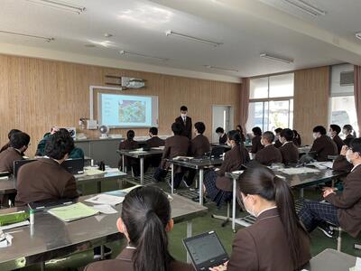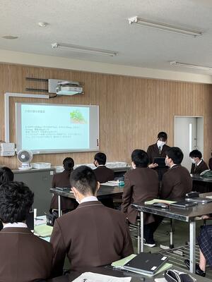 班で発表を行った後、班の代表者はみんなの前で発表をしてくれました。写真やグラフ・絵などを用いて上手に発表していました!