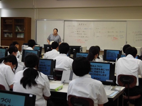 教科・系列の枠を越えて、総合学科ならではの様々な専門の授業を参観することで、職員は授業改善の大きなヒントを得ることができました。いろんな先生方が授業を見に来られるので、生徒たちもやや緊張気味で授業を受けていたようです。