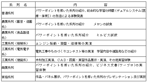 6月27日(水)に1年次生を対象に系列類型ガイダンスを実施しました。翔陽高校は、総合学科として履修する教科、又は分野の選択ができる魅力があります。1年次生は午前の授業で班に分かれ、5つの系列(普通・家庭・商業・農業[園芸造園・食品加工]・工業[機械・電気電子・建築])の「総合的な学習の時間」を見学・体験します。そして、午後の授業で自分の学びたいコースを決定し、希望系列のガイダンスを受けながら高校3年間の履修計画を立てます。