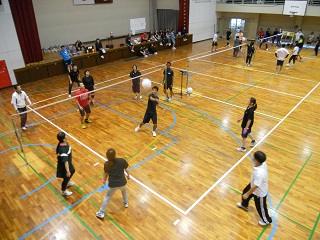 9月29日(土)に毎年恒例の育友会主催レクレーション(ビーチバレーボール大会)が本校体育館で実施されました。保護者と職員の合計18チーム126名が優勝杯と豪華賞品?を狙い、熱戦をくり広げました。日頃の運動不足のツケ?が回り、たぶん翌日以降は筋肉痛になっているかも? 成績は、1位1-5、2位3-5、3位2-3・7合同チームでした。また懇親会では78名の参加があり、大いに交流を深めました。