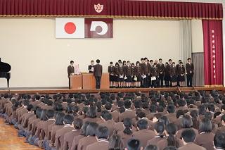 平成30年度後期終業式が行われました。最初に表彰式が行われ37人が表彰を受けました。