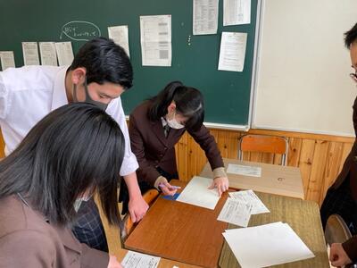 本番を迎えるまで何度か事前学習会が行われ、大津町の課題やその解決策を考えたり、質問の原稿を考え、練習を繰り返し行ってきました。