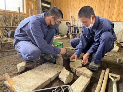 2年次では最後の授業のまとめとして延段づくりに挑戦しました!