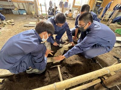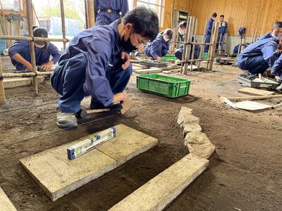 農業系列 園芸・造園では造園技能検定3級合格に向けて練習をしています。