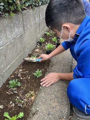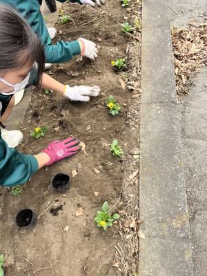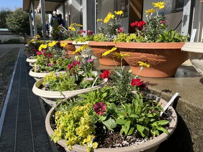 3年生のオープン科目「ガーデニング」では西門にノースポールを定植しました!