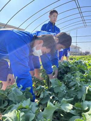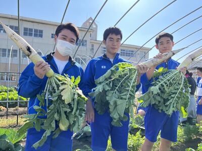 1年次生の選択科目「農業と環境」では冬野菜がどんどん大きくなり収穫を迎えています。