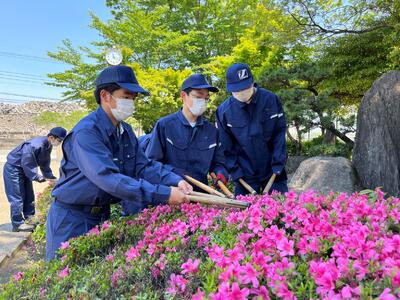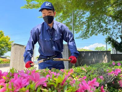 2年次生の造園技術の時間に正門周辺にある樹木の剪定を行いました。今年も満開に咲いたツツジも来年に向けて剪定をしました。刈り込みばさみを使って剪定するのは初めての生徒たち。事前に使い方や手入れの方法などを学習していましたが、実際にやってみると難しかったようです。しかし、綺麗に刈り込みできて楽しみながら実習を行うことができました。来年にツツジが満開に咲いてくれるのが楽しみです♪