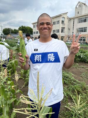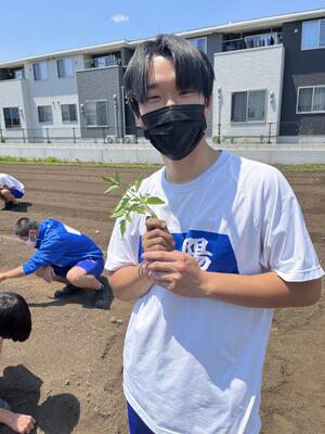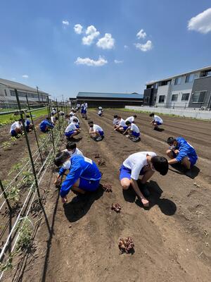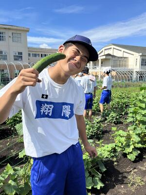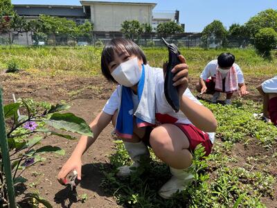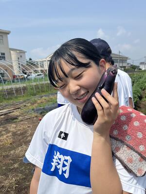 1年次生の選択科目「農業と環境」ではナス・ピーマン・トマト等それぞれ育ててみたい野菜を一人一畑で育てています。本日は観察・除草・播種を行いました。苗はまだ大きくありませんが、よく見るとピーマンやナス・トマトがなっていました!収穫したナスの形に驚く生徒もいました。自宅へ持って帰って美味しく食べて貰いたいです。もう少し大きくなったら沢山収穫できると思うので、楽しみに管理したいです。