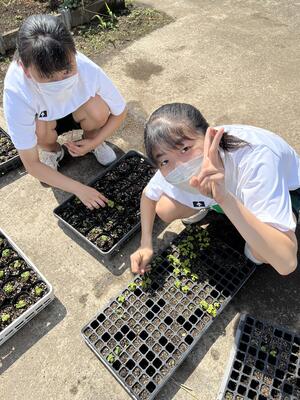 グリーンデザインの授業でダイコンとハクサイの種を撒きました!ハクサイはセルトレー、ダイコンは1つの穴に2粒ずつ離して撒くことができました。生徒たちは「小さな種なのに、あんなに大きなダイコン、ハクサイになるなんてすごーい!」と言いながら実習をしていました。