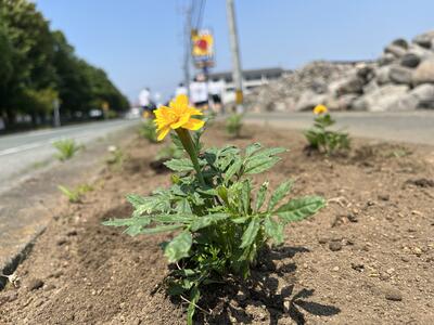 できあがった苗は翔陽高校前の花壇に定植します。色はイエローです♪翔陽高校の前を通る際は、是非ご覧ください。