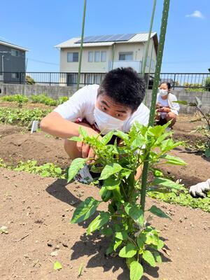 3年次オープン科目「生物活用」では夏野菜を育てています。