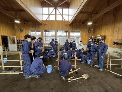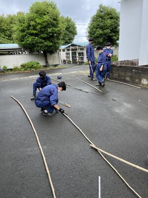 園芸・造園を選択している2年生。竹垣づくりに挑戦中です!