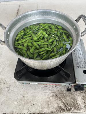 先日収穫して、即塩ゆでしてみんなで試食しました。