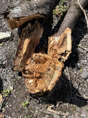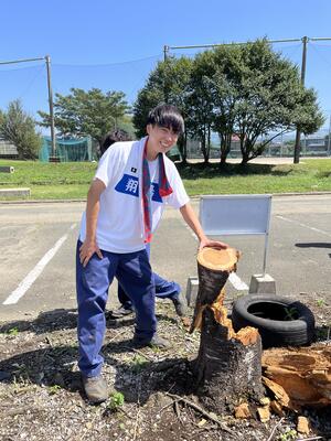 園芸・造園の3年生で台風14号で倒れたサクラの木をのこぎりで切断しました!