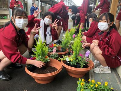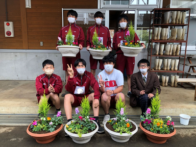 3年次のオープン科目「ガーデニング」の授業で寄せ植えを作りました。花材は同じですが、配置する場所や色で雰囲気が違ったものを作ることができました。文化祭で展示した後は家に持ち帰って綺麗に飾って欲しいです。「祖母がお花好きなので、プレゼントしたいです!」とニコニコした笑顔で寄せ植えを作っていました。