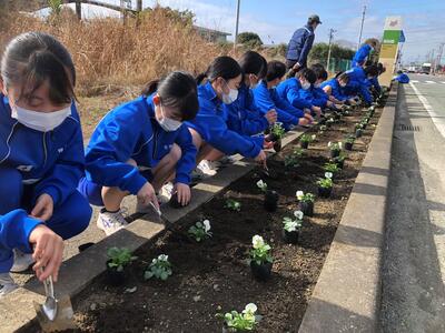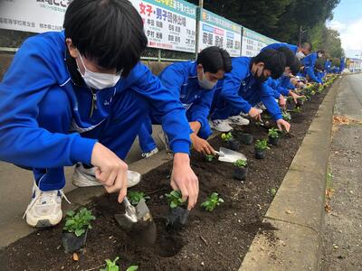 翔陽高校前の道路沿いにある花壇にパンジーを定植しました。通り行く方々から、「毎回楽しみにしているのよ~!」「今年も綺麗ね!」とお褒めのお言葉をいただきました。少しずつ寒くなってきていますが、寒さに負けず大きく育ってほしいです!