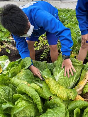 グリーンデザインで栽培しているハクサイを収穫しました!丸々大きく育ったハクサイを収穫して「重ぉ~い!!!」と口を揃えて言っていました。収穫した後はこんな鍋がしたいな~♪と話しは盛り上がっていました。何味の鍋をしたのでしょうか・・・。生徒達から話しを聞くのが楽しみです。