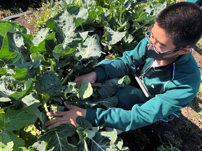 3年次のオープン科目「生物活用」では9月に播種した野菜たちを