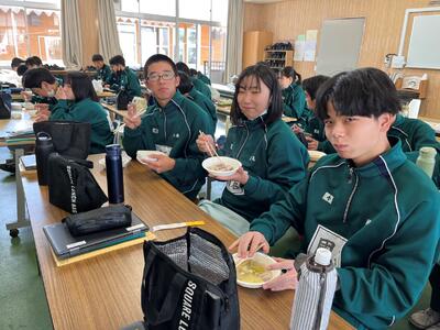 1年次生の選択科目「農業と環境」で育てている野菜を使って鍋パーティーをしました。ハクサイやダイコン、ブロッコリー、キャベツなど様々な野菜を収穫し、キムチ鍋・もつ鍋・ごま豆乳鍋の3種類を作りました。自分たちで育てた野菜は一段と美味しいみたいで、あっという間に間食です。日頃お世話になっている担任の先生にも持って行きました。次はピザを作るので、野菜を作る楽しみが増えました♪