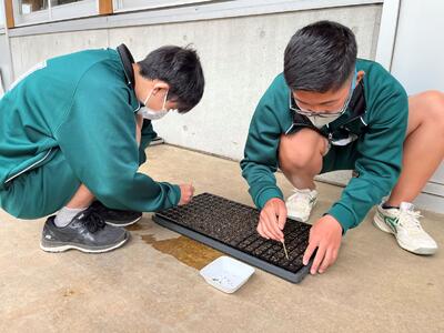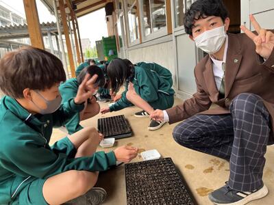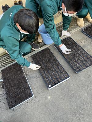 1年生の選択科目「農業と環境」の授業でトマトの種まきをしました。