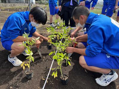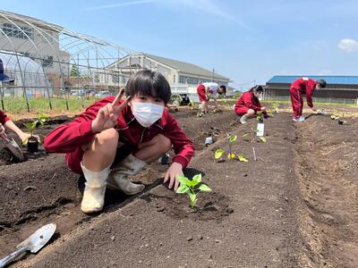 普段食べている野菜の苗を見るのが初めての生徒もいましたが、丁寧に植えることができました。