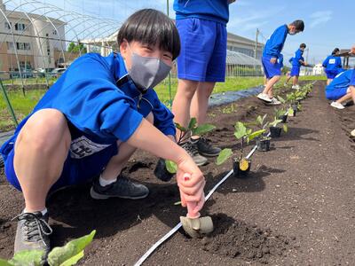 3年次生の選択科目「生物活用」の時間に夏野菜の苗と種を植えました!