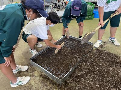 みんなで協力して、1粒ずつ丁寧にまいていきます。
