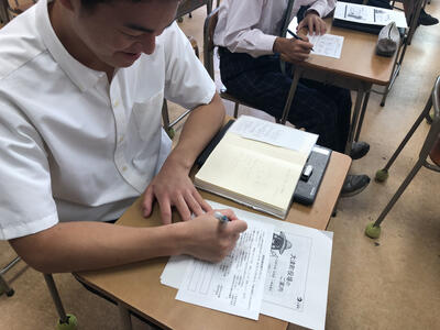 生徒たちは、メモをとりながら真剣にお話に耳を傾けていました。また、講演後の質疑応答では多くの生徒が積極的に質問していました。