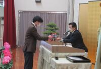 入会式では各クラスから2名ずつの計14名 がクラス幹事役員として紹介され、今後も横の繋がりを大切にしていってもらいたいです。また、 同窓会から卒業生へ卒業記念品として卒業証書を入れる丸筒を贈呈しました。新たな門出をお祝いするとともに、入会の言葉が述べられ、 同窓生としての認識をもってもらうための大切な行事となりました!
