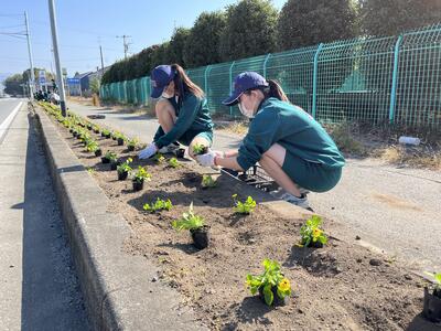 翔陽高校の前の道路にある花壇にビオラを定植しました。通り行く方から、「毎回楽しみにしているのよ~!」「今年も綺麗ね!」とお褒めのお言葉を頂きました。少しずつ寒くなってきていますが、寒さに負けず大きく育って欲しいです!