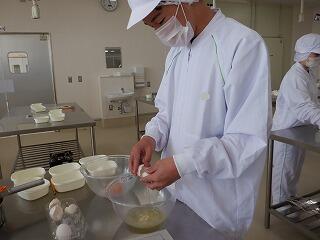 11月17日&21日に食品製造αの授業で、シフォンケーキを製造しました。卵をしっかりかき混ぜないと、うまく膨らみません。みんな製造にも慣れ、泡立て方も手馴れてきたようです。