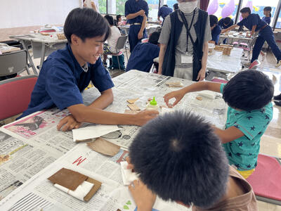 本校の工業系列建築を学ぶ生徒達が先生役として参加し、作品完成までをしっかりと