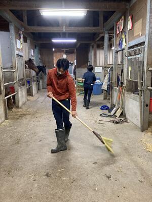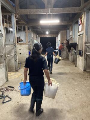 寒くなってくるこの時期から春までの間、馬たちには馬着を着せるようにしていますかなり寒くても平気なんですが、寒いと冬毛になってしまいます。すると運動して発汗した時の汗が乾きにくくなり、体が冷えて風邪をひいてしまうのです