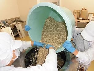 完成した麦麹と蒸した大豆、塩を混ぜ合わせ、味噌ベビーの誕生です。これから約5ヶ月成長させ、おいしいおいしい麦味噌の完成です。生徒と微生物のコラボした麦味噌、ご家庭でお味噌汁などにいかがでしょうか?