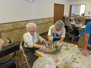 6月20日(木)に、大津町室にあるグループホーム光喜園さんで、入園者の方々を対象に生徒によるみそ製造指導を体験してきました。