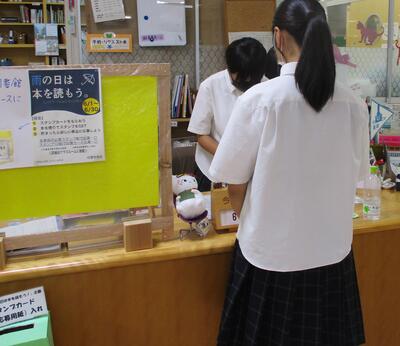 本を忘れた生徒や新しく本を借りたい生徒に貸出しています。